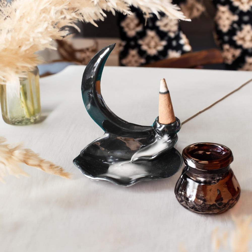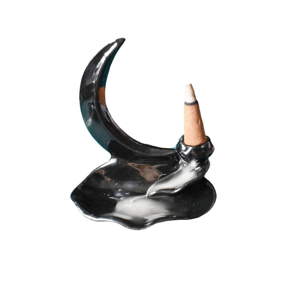 This beautiful backflow burner harnesses the power of the moon to strengthen your spiritual journey with its gorgeous lunar design. The crescent moon symbolises the divine feminine and transformation through new beginnings, inner peace and intuition. It also has strong connections to many cultures and religions including Hinduism, Islam and Paganism, with a strong sense of individuality rooted in its design. Enhance your spiritual self by lighting a backflow cone and placing it into the hold, watching the smoke flow across the burner as you slip into serenity!