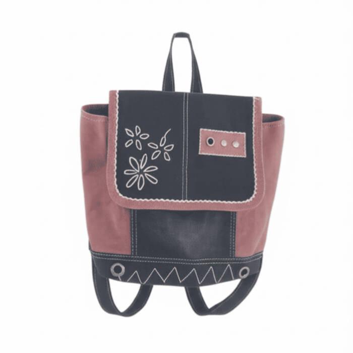 Backpack Canvas and Leather - Floral Magenta 35.5x6.5x30.5cm