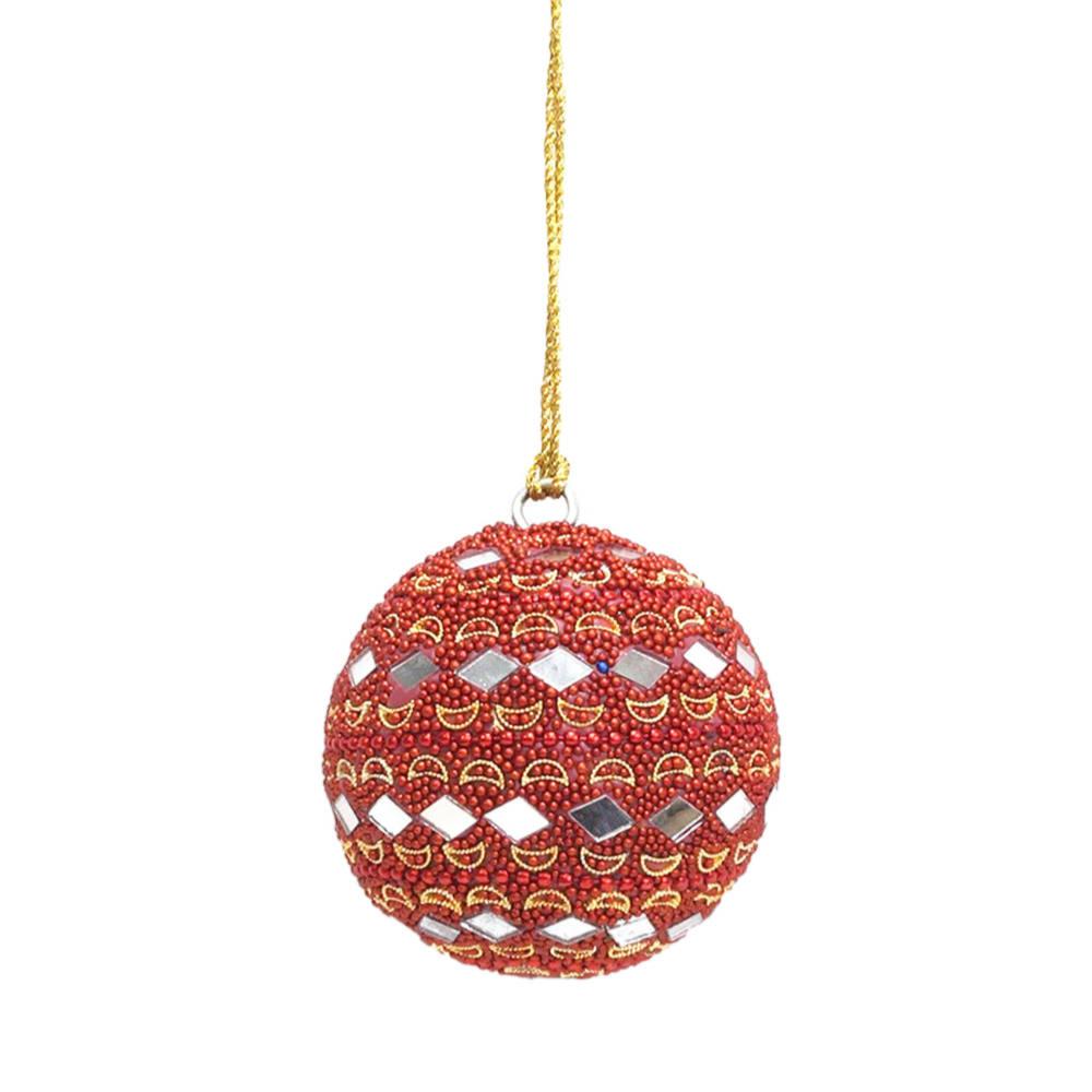 Bauble Beaded With Mirrors Red 7cm