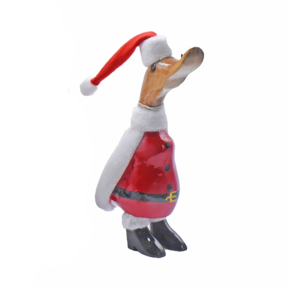 Carved Duck made of Bamboo, in hand painted Santa outfit plus hat and cloak.