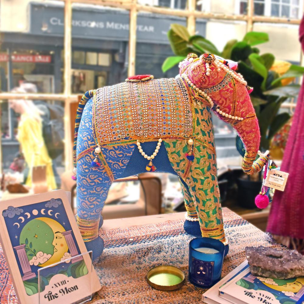 Patchwork elephant made from recycled textiles