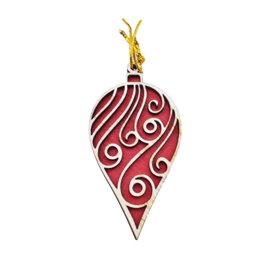 Hanging Christmas Decoration Olive Wood Teardrop Red