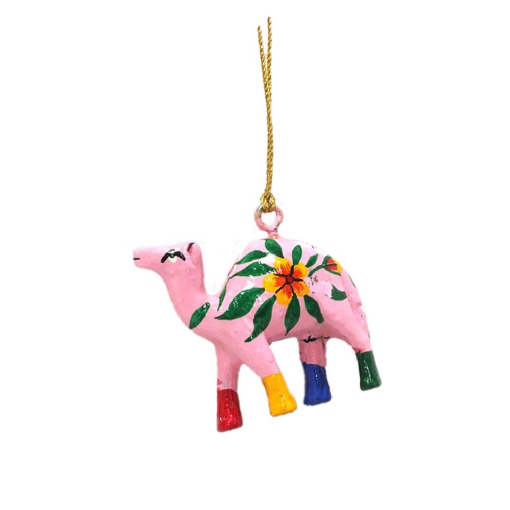 Handmade Christmas decoration - wooden camel with gold coloured hanging thread