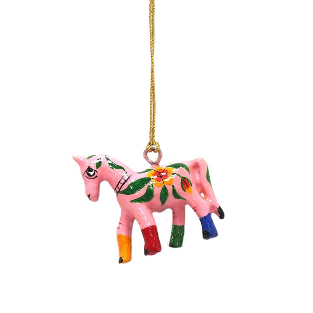 Handmade Christmas decoration - wooden camel with gold coloured hanging thread