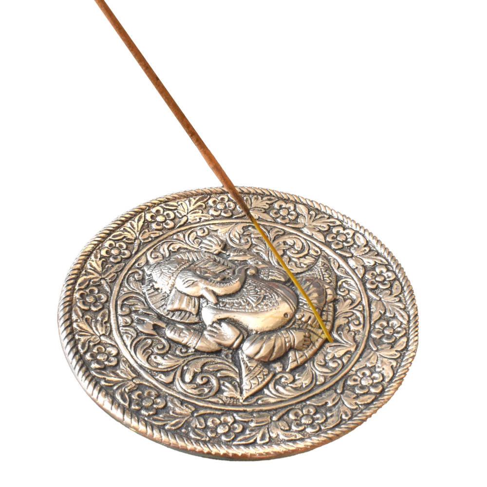Handmade from eco-friendly, sustainably sourced metal, this Fair Trade incense plate helps you to harness the power of Ganesha. Perfect for manifesting, spiritual practice and of course, for making your favourite space smell amazing with no added mess or fuss – simply pop an incense stick into the small hole at the base of the stone and allow your home or garden to be filled with fragrance!