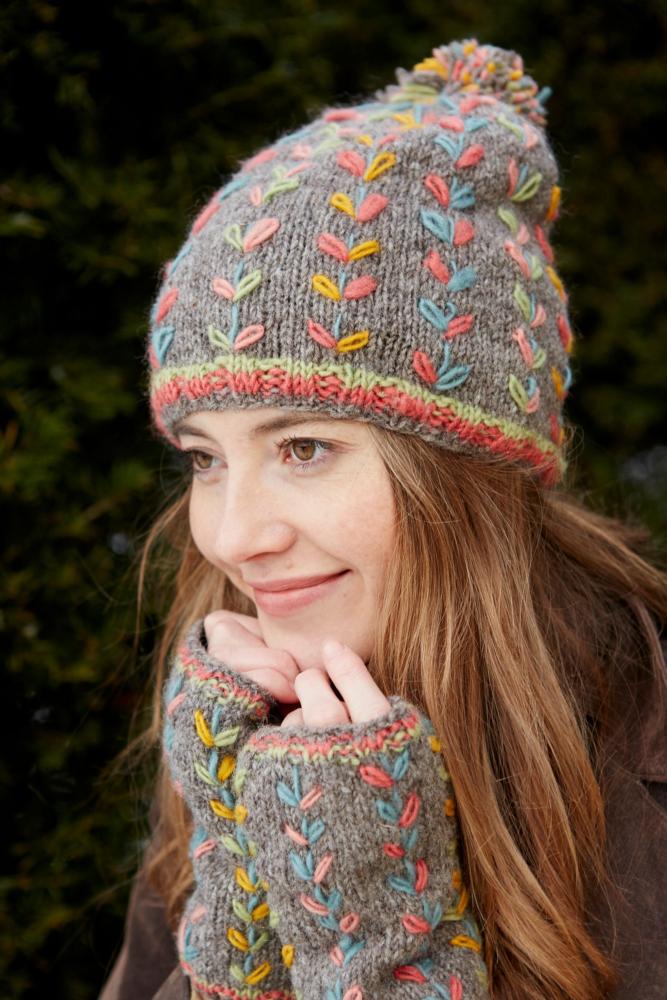 These Kylemore fingerless gloves are beautifully embroidered with simple leaf patterns inspired by nature. They are handknitted in wool in autumn hues and hand crafted with care. The fleece lining is sure to keep you warm and cosy.