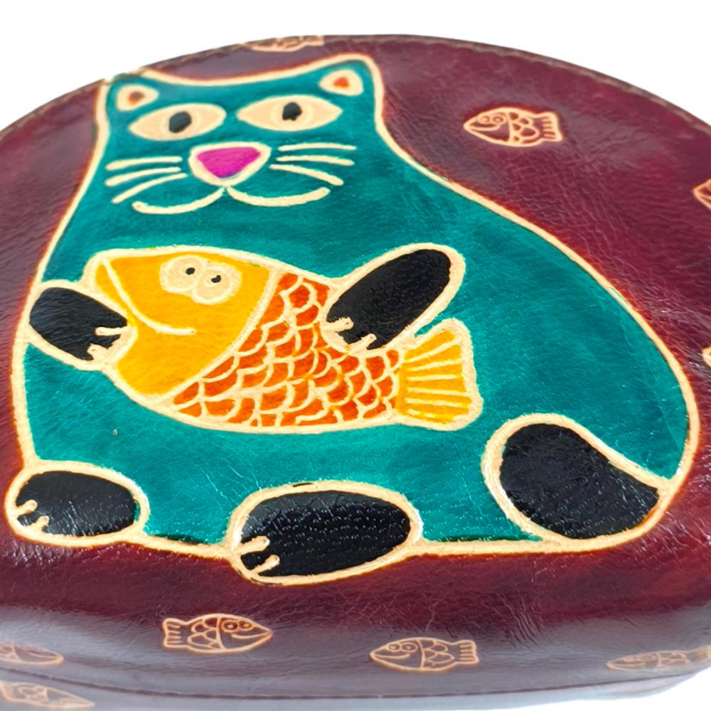 • Leather Purse Cat with Fish 14x9cm