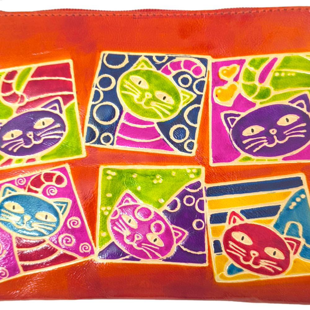 • Leather Purse / Pouch 6 Cats in Squares 20x14cm
