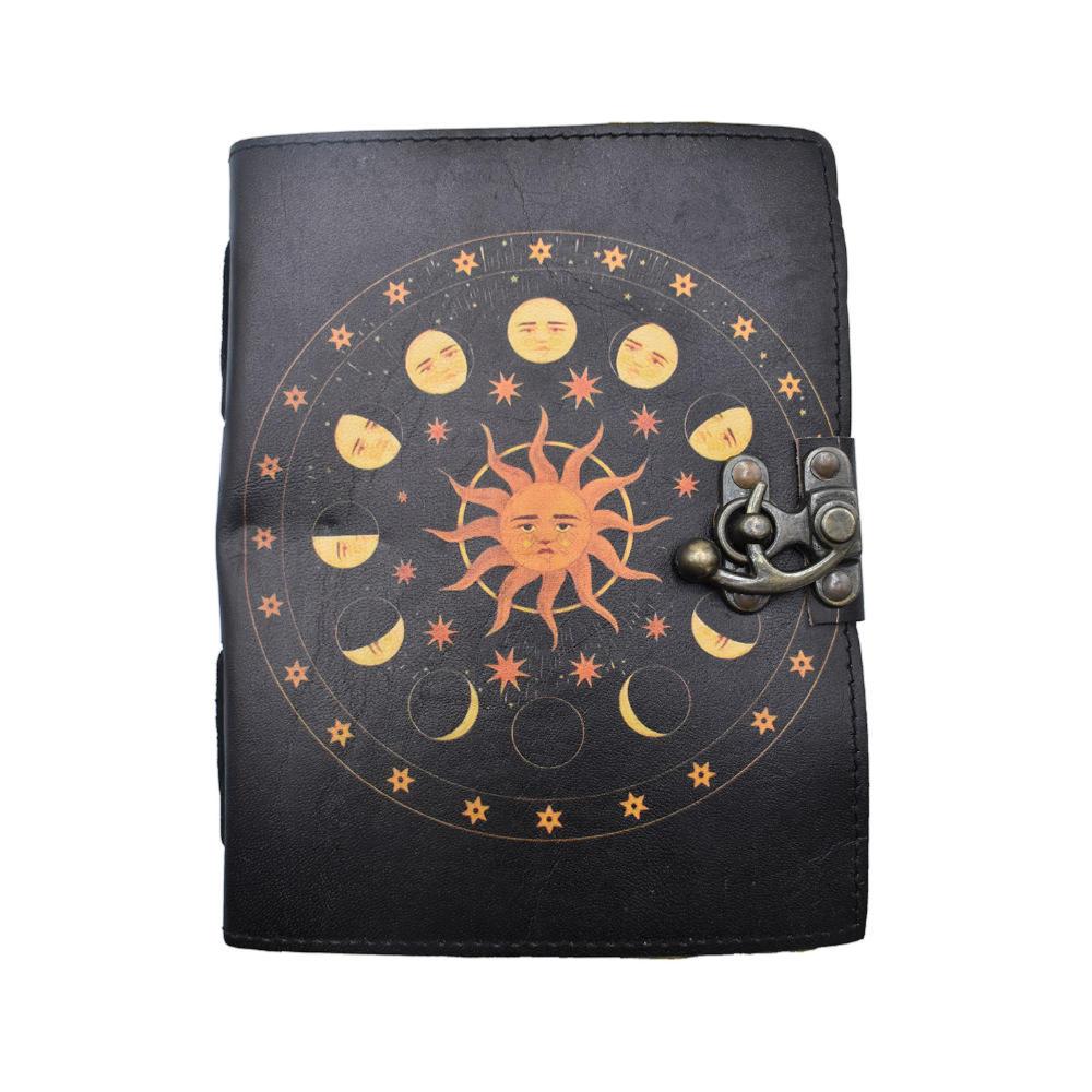 Notebook Leather Bound Sun/Moon Phases Circle 15x20cm