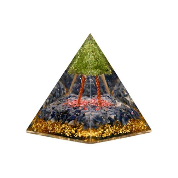 This beautiful orgone pyramid is handmade by skilled artisans in India with the purpose of finding your spiritual self and refreshing the soul. With a stunning display of the natural world in one compact pyramid, its design allows you to harness the power of nature and the earth as you cultivate your path towards the best version of yourself on your spiritual journey. Orgone pyramids are believed to help convert negative energies into positive frequencies, making them great for mindfulness activities such as meditation, journaling or affirmations. Sodalite inclusions aid clarity, communication and your voice as your throat chakra grows more balanced. Use that voice - the world is your oyster with this incredible new gateway!