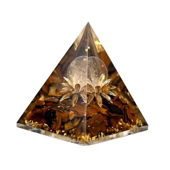 • Orgone Pyramid Tiger Eye Crystal Quartz 9cm