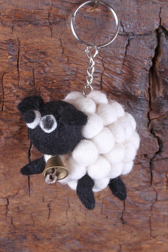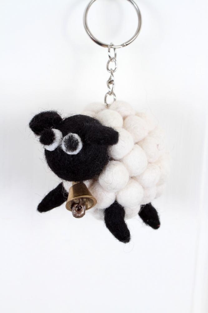 Handmade felt sheep - can be used as a keyring or bag charm.