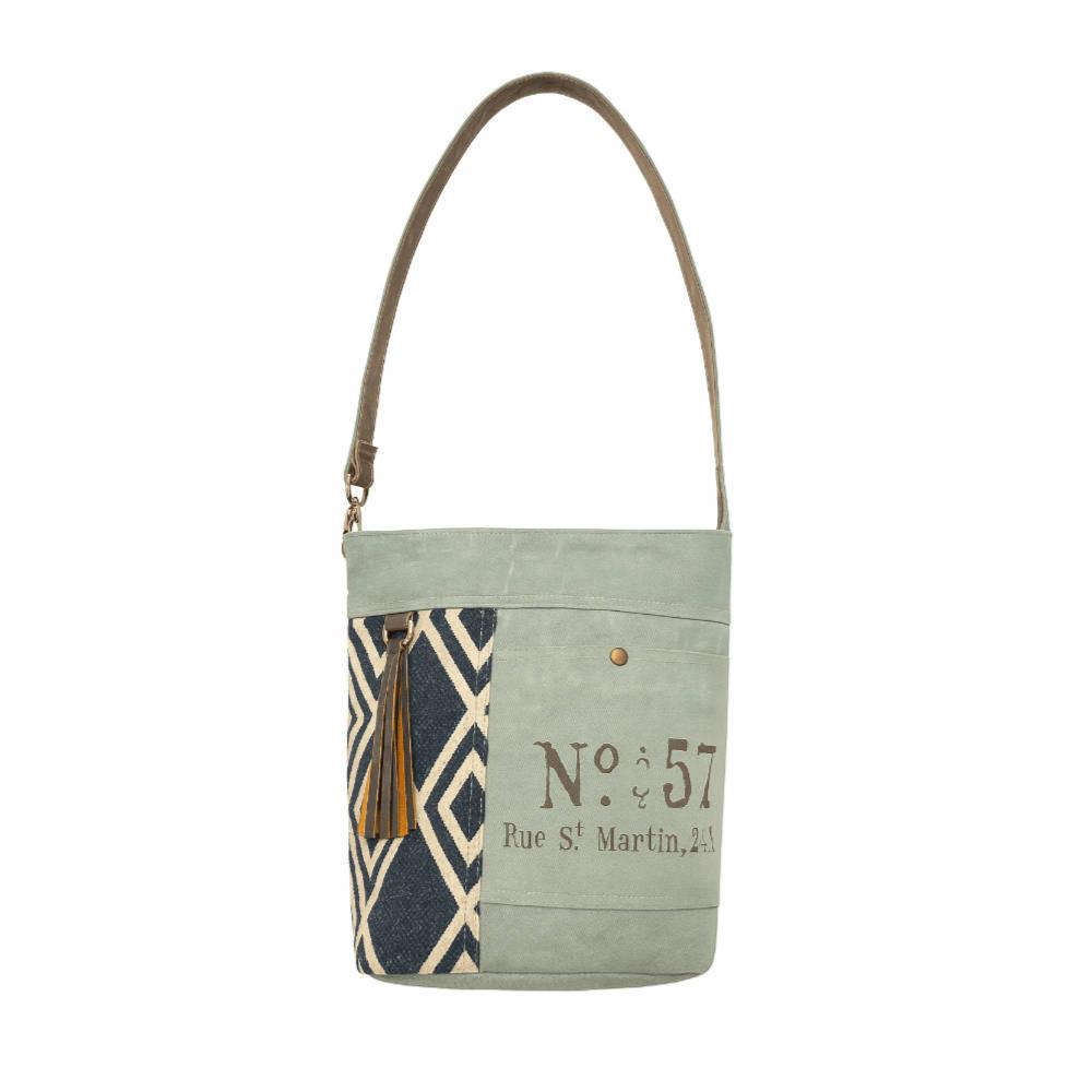 Tote Bag Canvas and Leather - No. 57 Tribal Pattern 30.5x9x30.5cm